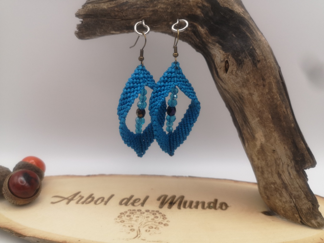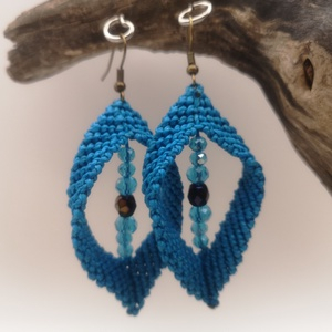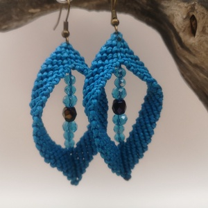 Cercei realizați prin tehnica macrame (nodurilor), cu ață cerată și mărgele fațetate din sticlă. Eleganți sau boho-chic, după cum se simte purtătoarea. Tortițele sunt din aliaj, dar se pot schimba cu tortițe din argint contra unei taxe de 20 lei.